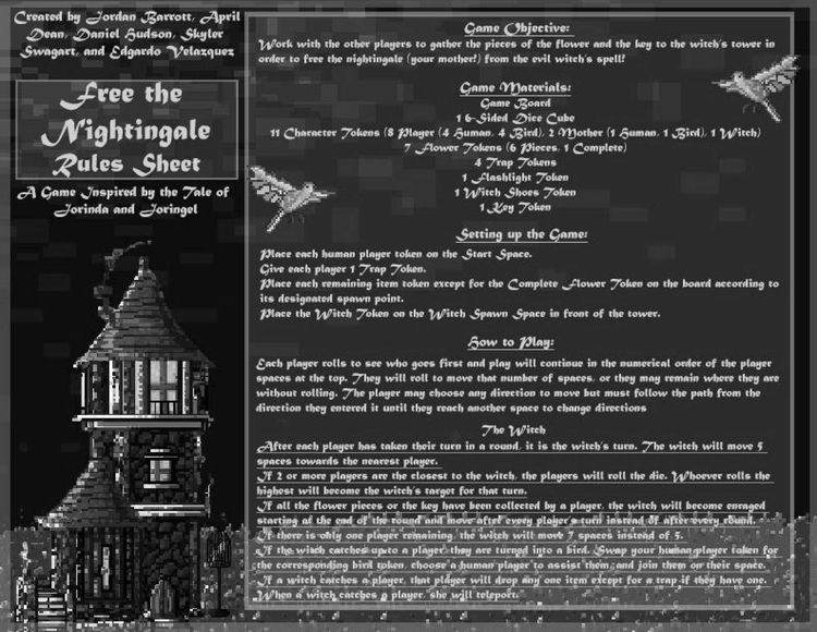 For a Game Design course, I worked with an artist who goes by @speccart on Instagram to turn the Grimm Brothers' Yorinda and Yoringel into a cooperative board game. I led the design process and handled all playtesting on Roll20.